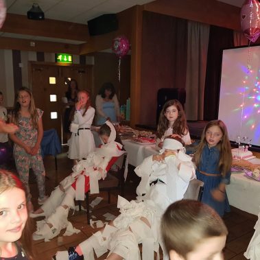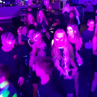 - The parties are a little different from the younger ones. We still do crazy dances and play fun games. Some of the games are a little more grown-up and we can play ‘out’ games as they tend to understand better. We bring Glow Bands for all and of course our bubble machine.